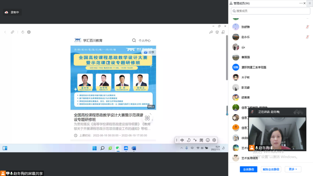 此次培训主讲的夏永林、刘学莘、史玮、倪宝玉等四位专家均有着丰富的教学经验和参赛经验,分别围绕“课程思政示范课程申报问题分析与对策研究”、“课程思政说课比赛要点、技巧、误区与评审标准解读”、“基于案例的专业课课程思政设计与示范课建设”、“课程思政说课大赛的备赛与现场说课示范”展开。