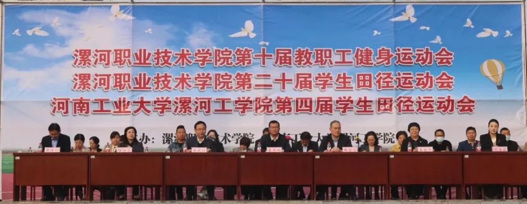 11月9日,suncity太阳新城第十届教职工健身运动会、suncity太阳新城第二十届学生田径运动会、河南工业大学漯河工学院第四届学生田径运动会在学校西操场隆重举行。学院党委书记易军鹏,党委副书记薛存心,党委委员、副院长朱晓红、吕爱华、程传蕊,党委委员、纪委书记刘杏茹,党委委员、组宣部部长缪俊岭出席开幕式。学院各院(系)部领导及近万名师生参加开幕式。开幕式由党委委员、副院长朱晓红主持。