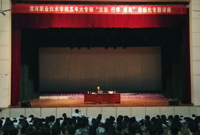 9月4日,五年大专部举办了“立志、行孝、感恩”迎2017级新生入学教育专题讲座。中原孔子书院院长、北京中青世纪教育机构首席国学讲师、中华文化大讲堂国学讲师、中国国学文化公益论坛发起人焦金鹏教授主讲。2017级900余名新生聆听了讲座。