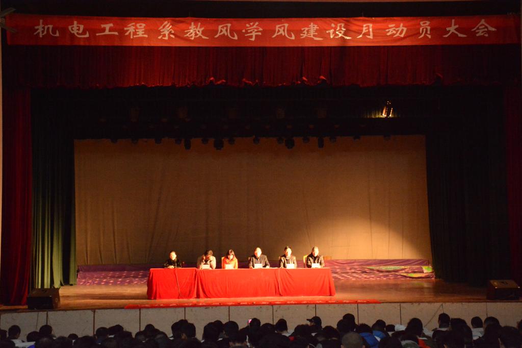 11月29日,机电工程系举行“教风学风建设月”活动动员大会,系全体师生共1000多人参加。副主任朱建营主持会议,副主任冯凯宣读了《机电工程系“学风教风建设月”活动实施方案》,教师代表承姿辛和学生代表郑骏升分别发言,系党总支书记翟迎朝作了总结讲话。