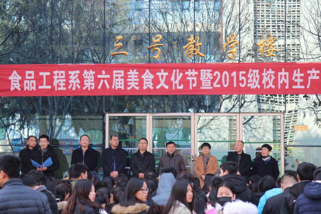 12月22日,学院食品工程系第六届美食文化节暨2015级学生校内生产实训产品展在三号教学楼成功举行。学院副院长朱晓红、王变奇、代骅,工会主席吕爱华,相关部门负责人及食品工程系全体师生参加开幕大会。会议由食品工程系主任李文典主持。