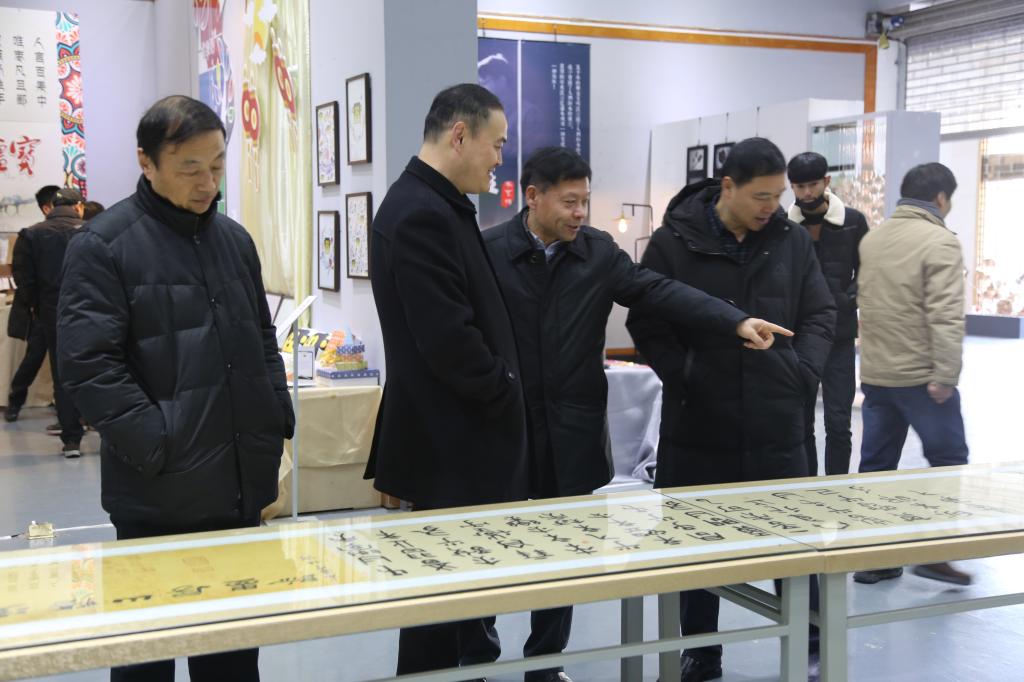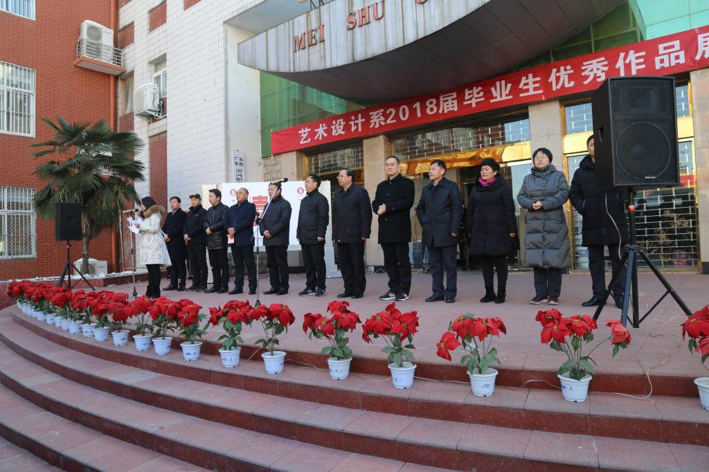 1月9日上午,艺术设计系2018届毕业生优秀作品展在学院美术馆举行。院党委书记顾文明,纪委书记薛存心,副院长朱晓红、王变奇及部分系部处室负责人以及北京天誉国际装饰公司总经理杨杰男、河南神州旅游产品有限责任公司营销策划部经理陈楠、舞林梦集团总裁张舵、一诺装饰公司总经理赵锁宾、斯瑞广告公司总经理陈要三等20余家公司代表和新闻媒体参加了开幕式。