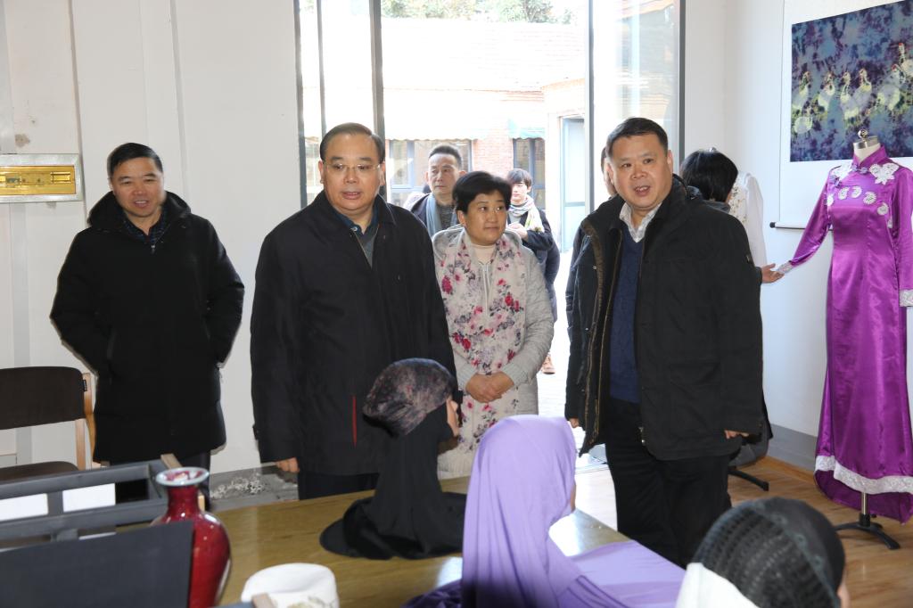 院党委书记顾文明,校长王春阳参观服装系作品展