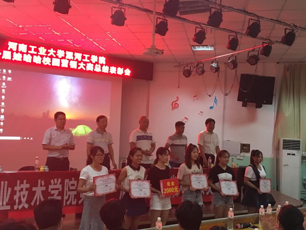近日,杭州娃哈哈集团第十一届娃哈哈校园营销大赛表彰大会在我院小礼堂举行。教务处长贾新政,经济贸易与管理系主任兰涛、党总支书记张改亮,娃哈哈集团经理王利军、豫西市场省级高校经理任松卫参加。