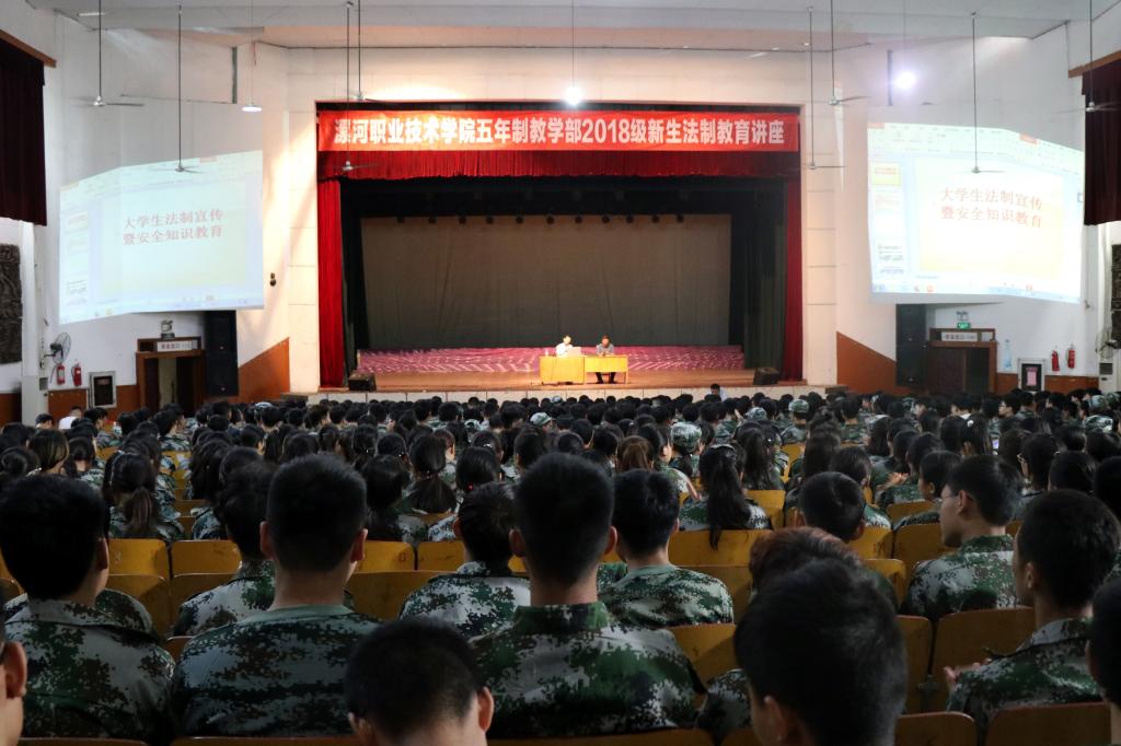 9月6日上午,五年制教学部举办2018级新生法制教育讲座。副教授郭满堂做题为《大学生法治宣传暨法制安全教育》专题讲座。学管科科长常玉峰、办公室主任赵伟、团总支书记李珑和全体辅导员、2018级新生共800余人参加。