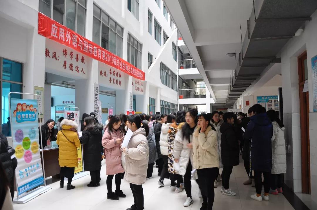 12月26日中午,应用外语与国际教育2019届毕业生师范类双选校园招聘负责人见面会在3101会议室进行。系主任张彦鸽、党总支书记寇槐花,副主任吕红梅、孟令超以及省内外24家教育机构的领导和工作人员70人和200余名师范类学生参加。