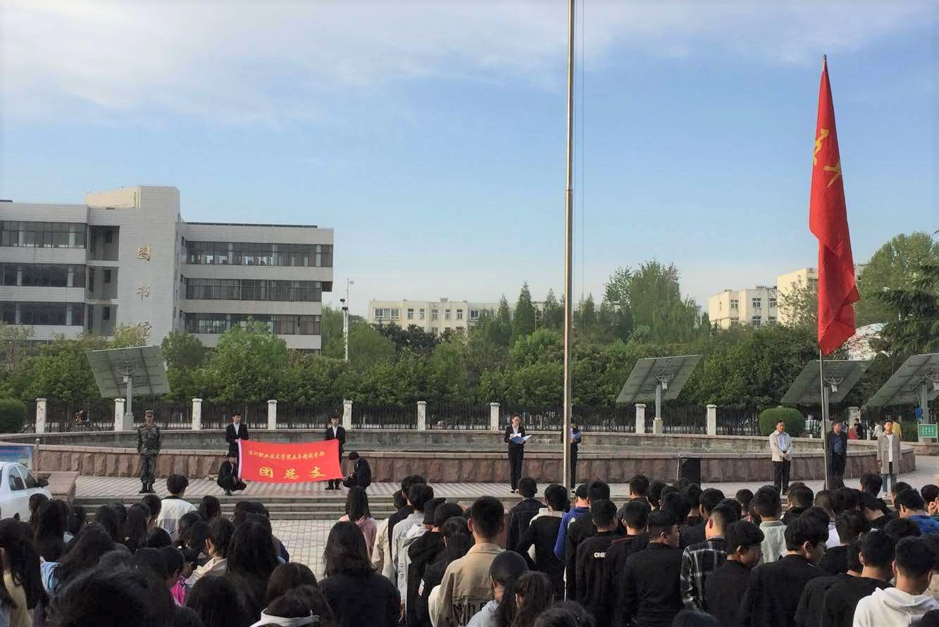 4月15日早上七点,五年制教学部全体师生在院行政楼楼前举行升国旗仪式。