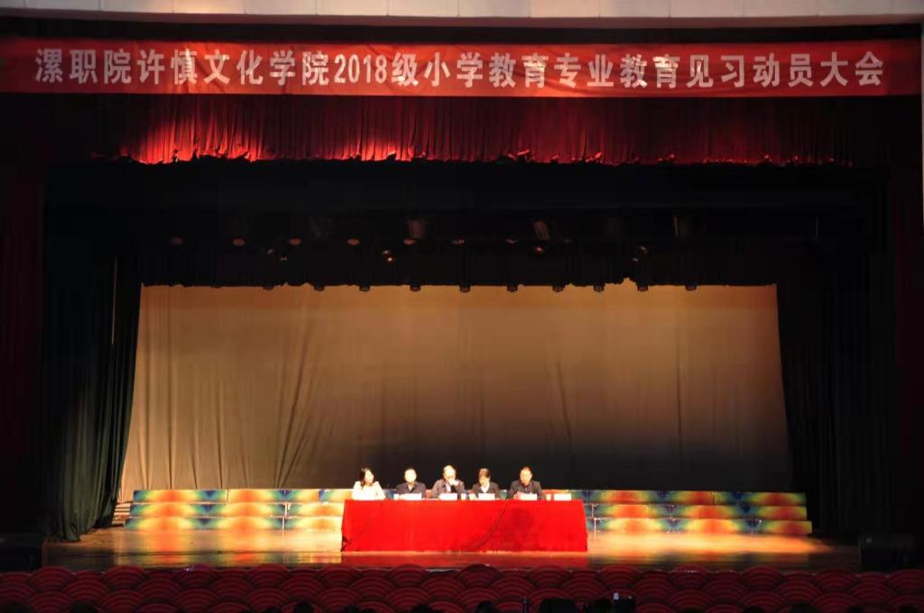 10月16日,许慎文化学院召开了2018级小学教育专业教育见习动员大会。许慎文化学院领导班子成员,小学教育教研室、语文教育教研室、英语教育教研室全体教师及2018级小学教育专业483名同学参加。会议由办公室主任李晓静主持。
