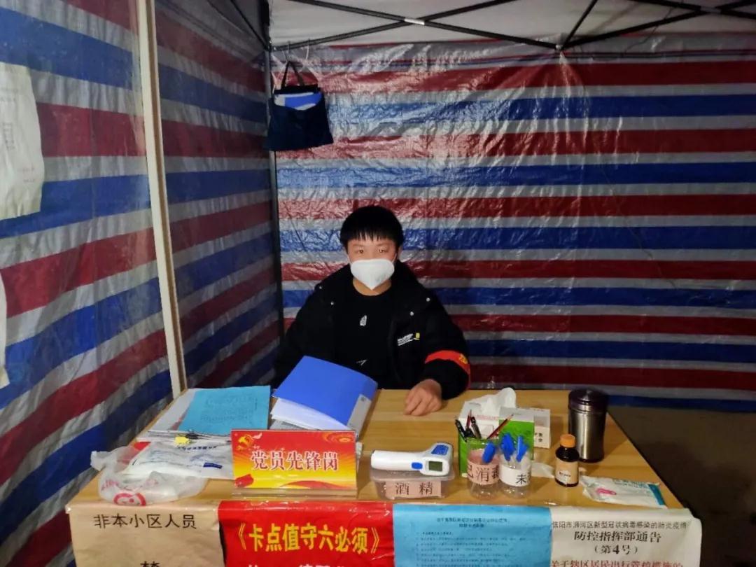 卢志阳,19级电气二班,共青团员。看到家乡疫情防控志愿者招募公告后,他主动报名参加,经过岗前培训,认真做好个人防护后,开始协助村干部对于往来人员进行信息登记,温度测量等,为家乡疫情防控贡献青春力量。